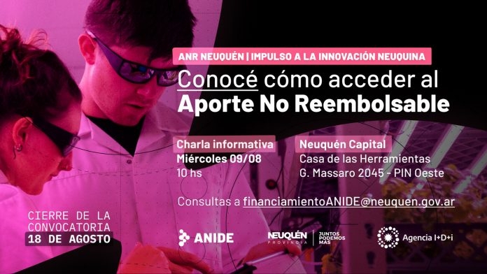 La Agencia Neuquina de Innovación para el Desarrollo (Anide) presentará mañana miércoles una línea de financiamiento para proyectos de innovación tecnológica. La actividad será mañana a las 10 a través de una charla en la Casa de las Herramientas, en Giuseppe Massaro 2.045, del Parque Industrial Oeste de la capital neuquina y se informará cómo acceder a los aportes no reembolsables para proyectos de innovación tecnológica para pymes y cooperativas del Neuquén. Para participar, deberán previamente inscribirse en www.anide.gob.ar/inscripciones