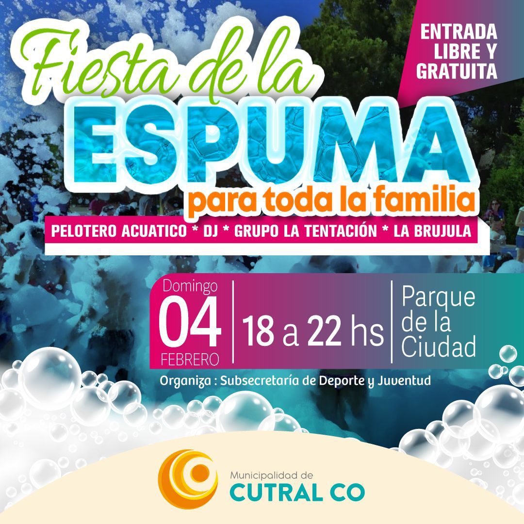 Fiesta de la espuma en Cutral co, hoy a partir de las 18 00 hrs. en el parque de la ciudad, entrada libre y gratiuta